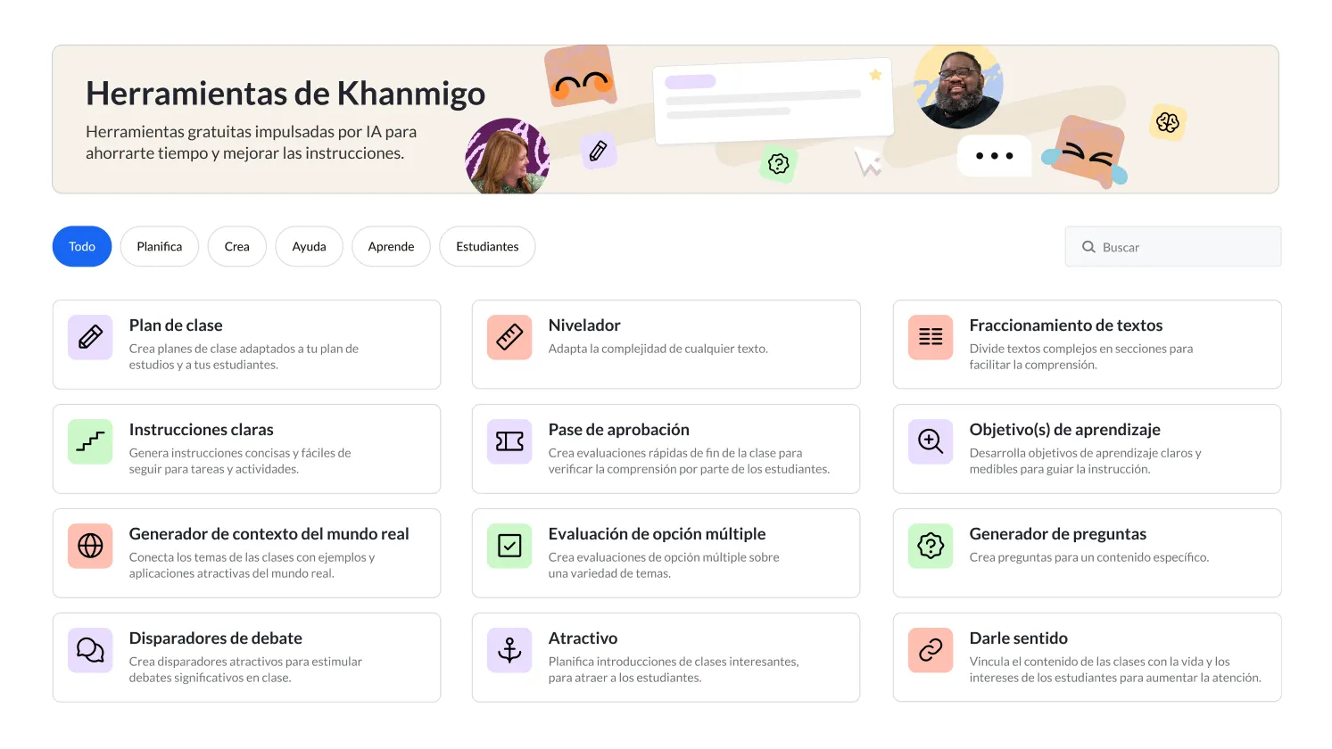 Dedica menos tiempo a preparar tus clases y más tiempo con tus estudiantes. Khanmigo ahora es completamente gratuito.