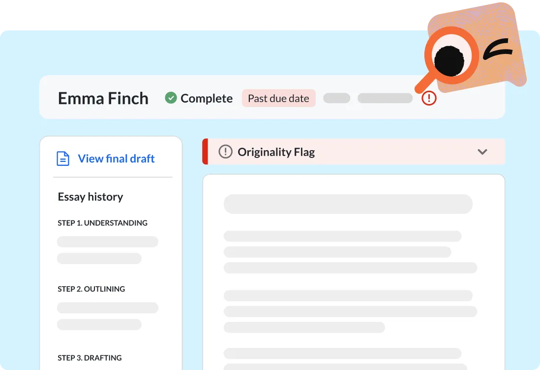 Monitor student progress with detailed insights into their writing process, strengths, and areas for improvement. Built-in originality checks enhance academic integrity.