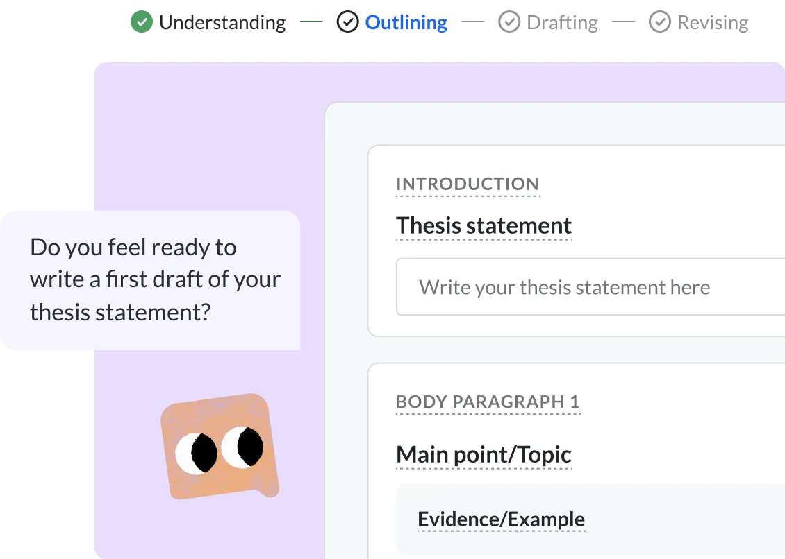 Unlike AI tools that allow students to accept suggested rewrites or draft entire essays for them, Writing Coach guides students from outline to final draft—without ever writing a word for them.