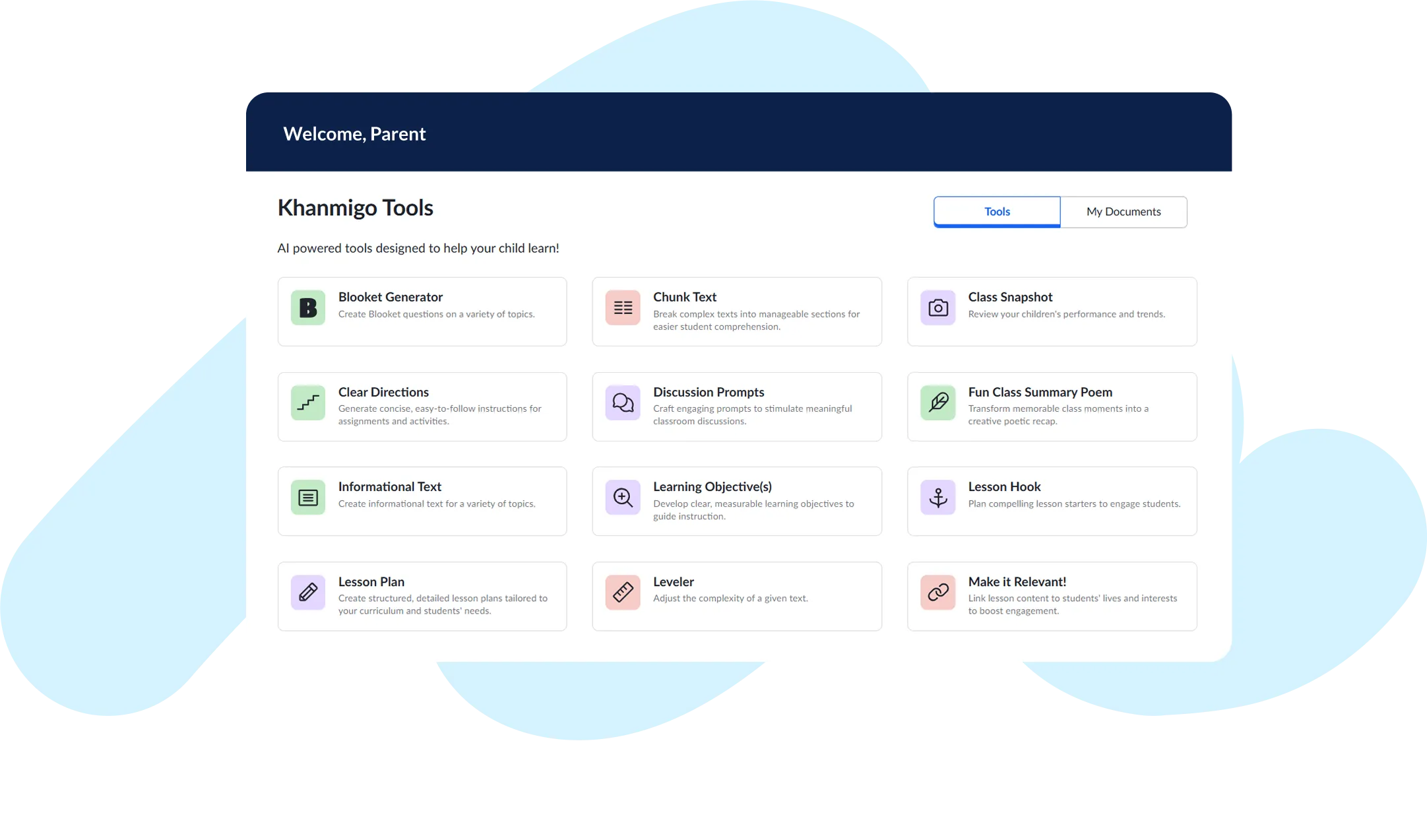 You don’t need to know all the answers—Khanmigo has over 20 parent-tools to help you feel confident and keep your child engaged.